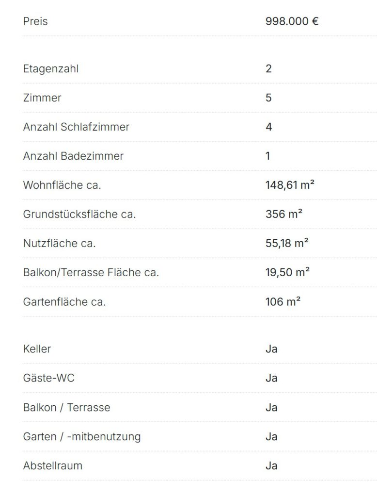Besonders hervorzuheben sind die großen Gartenflächen im Erdgeschoß, sowie die sonnigen Balkone im Obergeschoß.